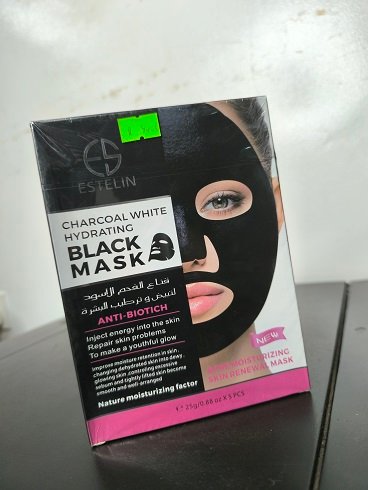Estelin Charcoal White Hydrating Black Mask detoxifies, hydrates, and tightens pores. Enriched with activated charcoal and hydrating agents for clear, glowing skin.